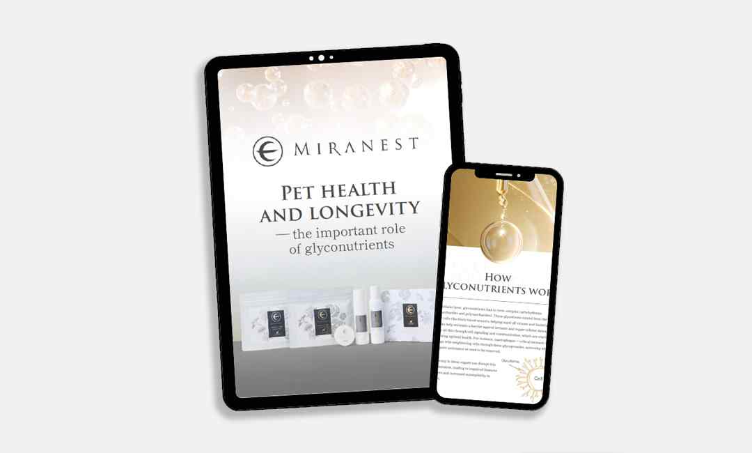 MIRANEST’s revolutionary superfood formula uses proven glyconutrients to stop itching, soothe allergies, reduce shedding, and restore a shiny, healthy coat—all at the cellular level in just 30 days!