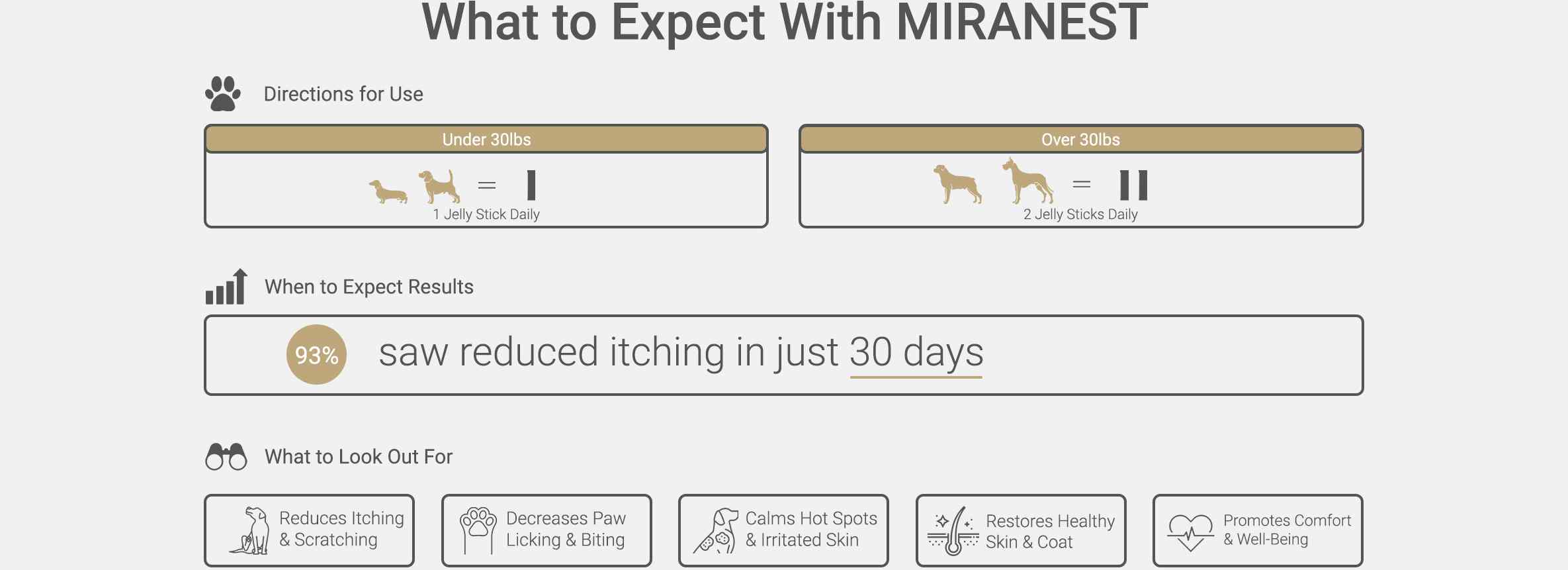 MIRANEST is the world's first proprietary superfood jelly stick powered by swiftlet nest extract—a rare, science-backed ingredient rich in glyconutrients. Unlike ordinary supplements, MIRANEST works at the cellular level, strengthening the skin barrier, reducing inflammation, and promoting fast fur regrowth. With its proprietary formula, it delivers proven results for itching, allergies, shedding, and hot spots—naturally and effectively.