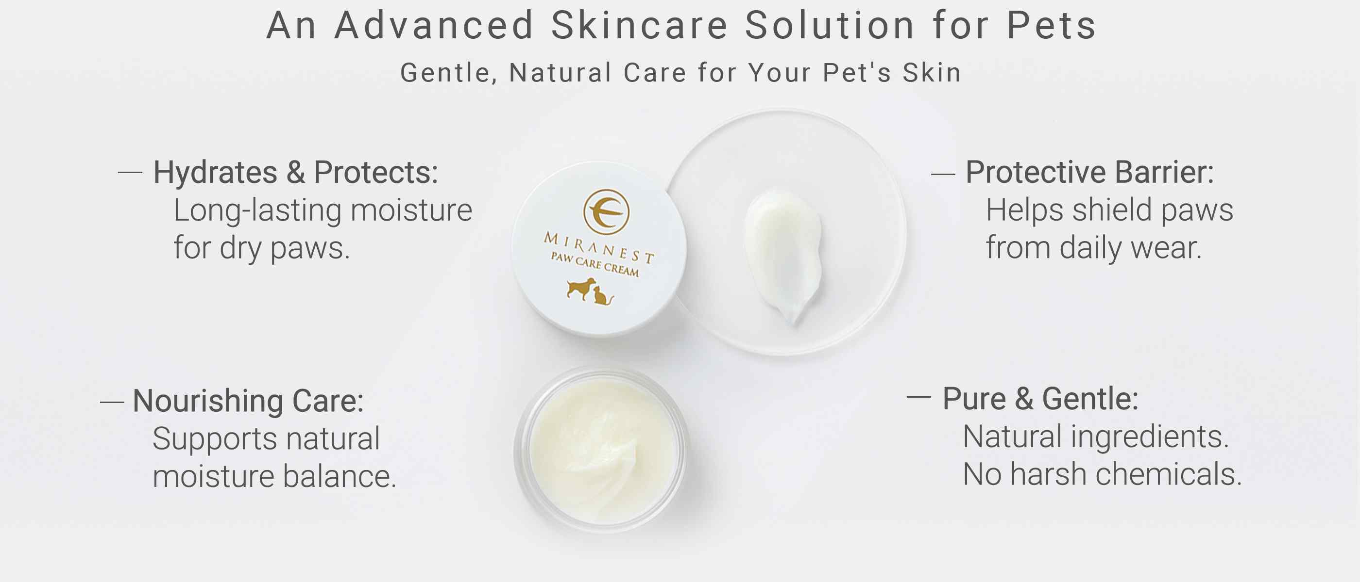 MIRANEST Paw Cream is powered by Swiftlet Nest, a rare superfood known for its nourishing and moisturizing properties. Combined with plant-based ingredients, it helps form a protective barrier and provides gentle, natural care without harsh chemicals.